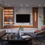 PVC wooden flooring of multiple shades is used on the upper level. The central staircase leads to the four main functions – Office, Waiting area, Aftermarket, and Billiard zone with café. Shades of white, black, ash, brown, and yellow have been carefully placed to design various portions according to the client’s needs and desired aesthetic.